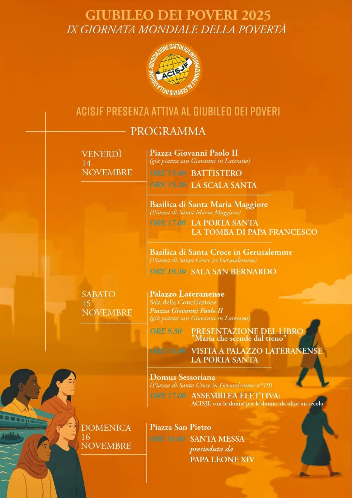 Presenza attiva al Giubileo dei poveri a Roma di Acisjf Terra Solidale Messina insieme con Acisjf – Federazione Nazionale, Acisjf Casa della Giovane Como, Acisf Firenze, Acisjf Vicenza Associazione di volontariato, Domus Civica – Acisjf Venezia, Acisjf Casa della giovane Pontechiasso, Casa della Giovane Acisjf Pisa.