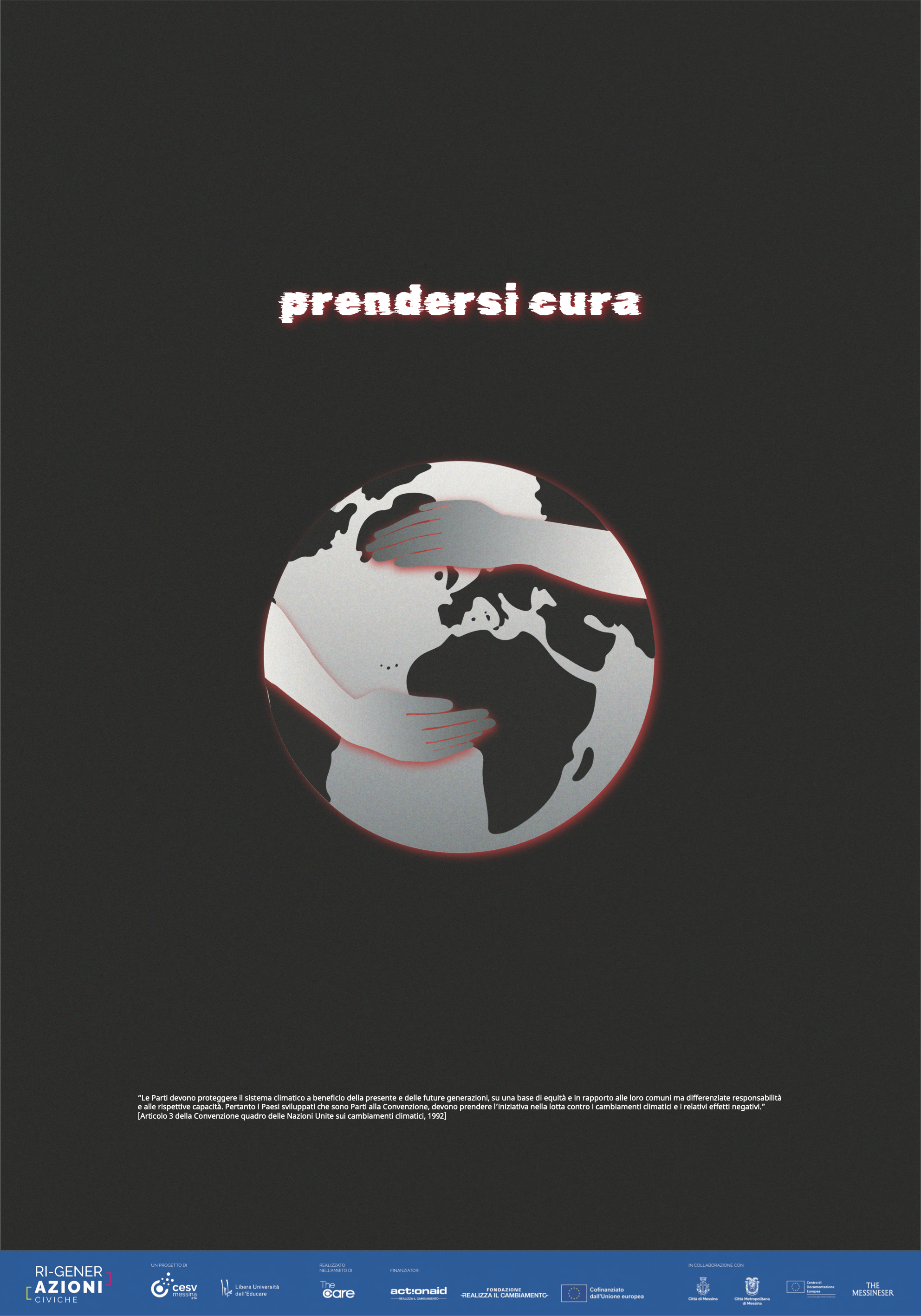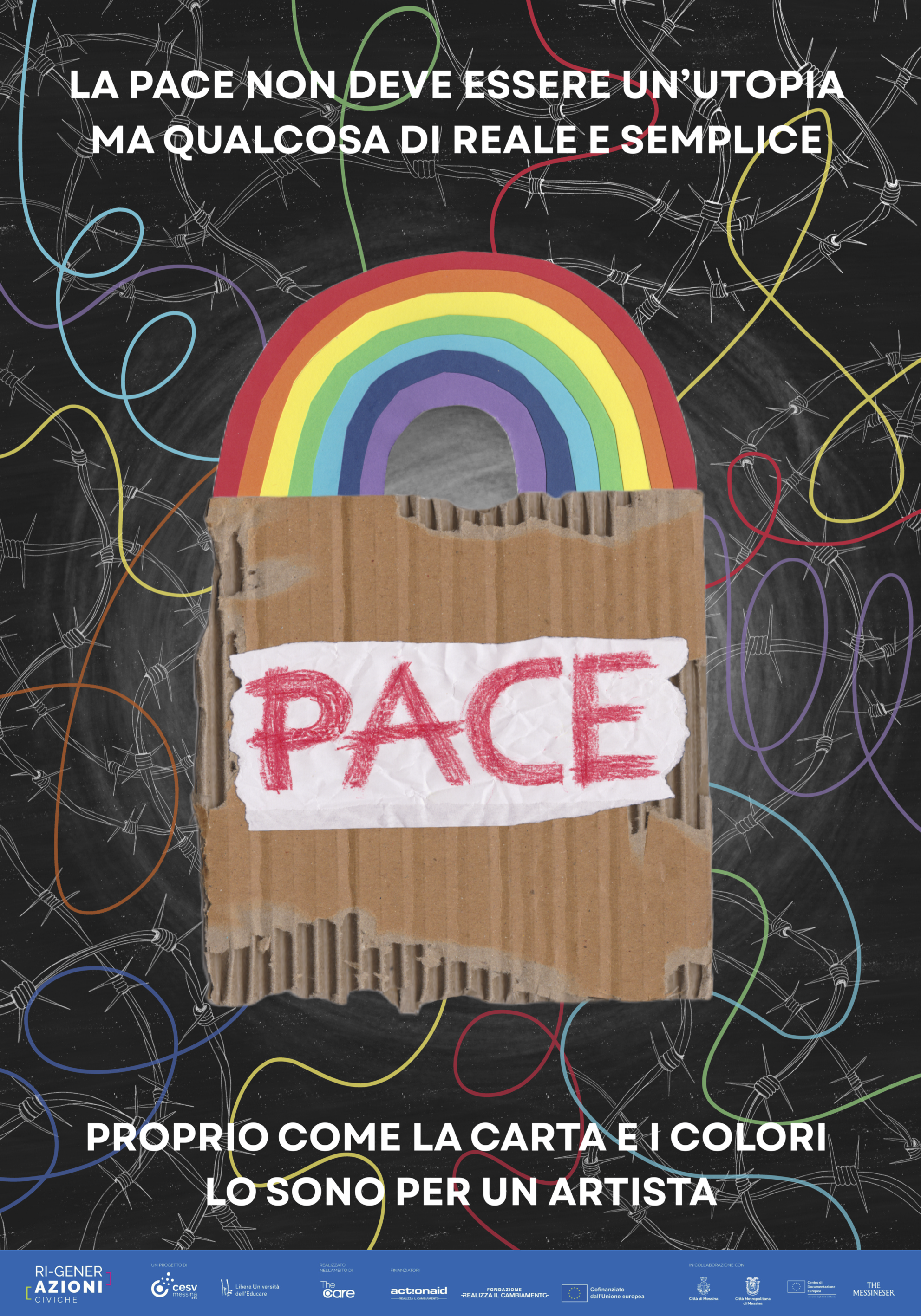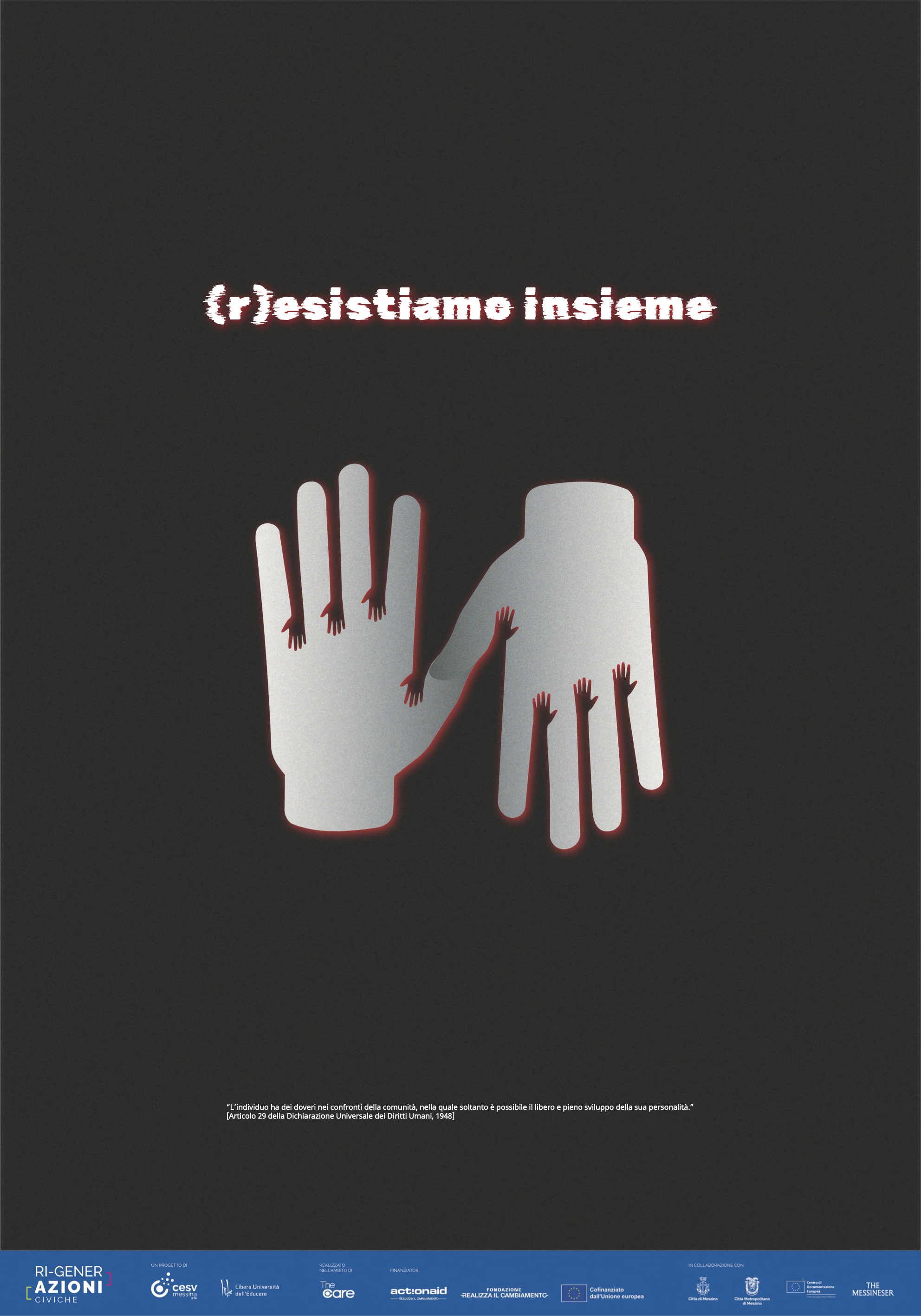 L’iniziativa, promossa dal Centro Servizi per il volontariato di Messina e dalla Libera Università dell’Educare, con il sostegno dell’assessorato alle Politiche Giovanili del Comune di Messina, della Città Metropolitana, del Centro di documentazione europea dell’Università degli Studi di Messina e della rivista The Messineser, è stata una call aperta a tutti, dai cittadini agli artisti passando per gli studenti, da soli o in gruppo, che vivono, studiano o lavorano nell’area dello Stretto e nel Messinese. Obiettivo: individuare i migliori progetti di poster-art sui diritti tutelati dalla Carta dell’Unione Europea da affiggere nei luoghi di socializzazione formale e informale della provincia.